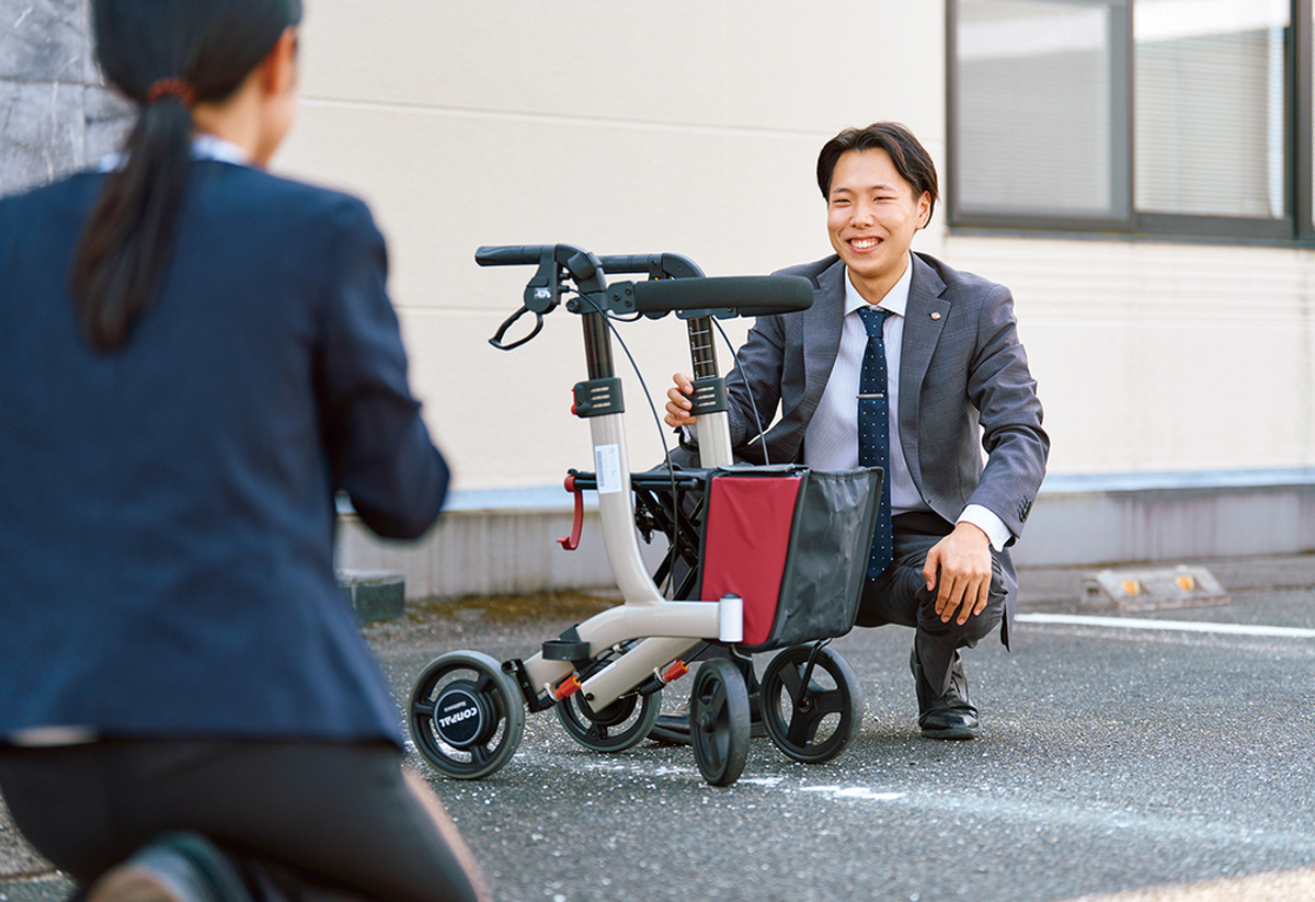 世界一の長寿国となった日本において、高齢者は介護保険制度を利用して様々な介護サービスを受けることができます。その中で当社が担うのは、高齢者の生活環境を整えるための手すりや車いすなどの福祉用具のレンタル・販売、住宅改修(リフォーム)事業です。