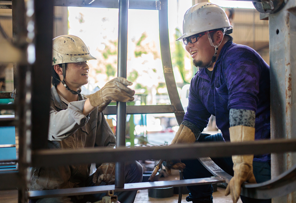 製造部では、ライン作業ではなく1人1人が様々な多能工業務を行い、営業は全国を駆けまわり、設計はユーザーに最適な提案を行い、日々「気付き」を得ながら成長を続けています。