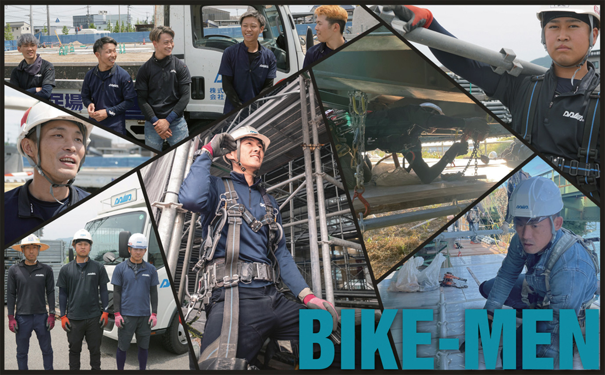 建物が出来上がったとき、私達の提供する足場は残りません。 しかし、どんなに素晴らしい建物でも足場がなければ建築・建設することは困難です。建築・建設業界を縁の下で支え、「建物をつくる人たちを守る」ことが私たちの仕事です。当社は創業以来、安全第一と人材育成を経営方針に、「ビケ足場のダイワ」としての知名度も得て、クサビ式足場レンタル・リース業界では九州地区トップシェアとなりました。2000年からは太陽光発電システム工事にも先駆的に着手し、近年では「次世代足場」・「吊り足場」の導入や「ドローンスクール」の開校など、クサビ式足場だけにとらわれない、総合的な足場会社を目指しています。