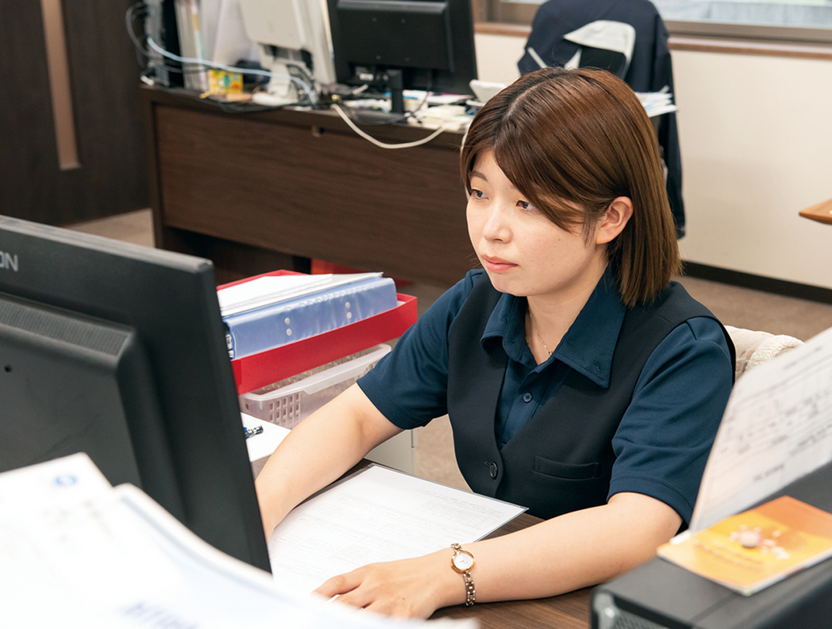 メッセージ - 「地質調査は人の命を守ることが使命」と聞いて、素直にカッコいいと感じ、この仕事に就けたことを誇りに思います。当社の高い技術力と専門的な知識を継承していくためにもフレッシュな仲間が加わると嬉しいです。(先輩社員 総務管理部宮野 結夏さん 2022年入社)