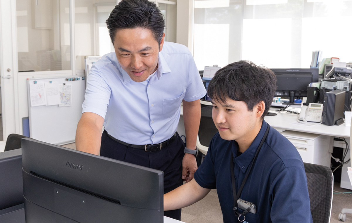 若手育成に力を注ぐ。一人ひとりの性格などを踏まえ、寄り添う形で丁寧に指導する。社員が助け合いの精神を持ち、アットホームな雰囲気。