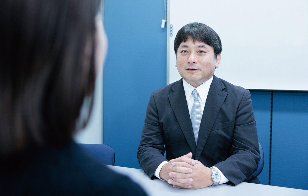 社長と若手社員の個人面談では、将来のキャリアや現在の課題など様々な相談を行うことができる