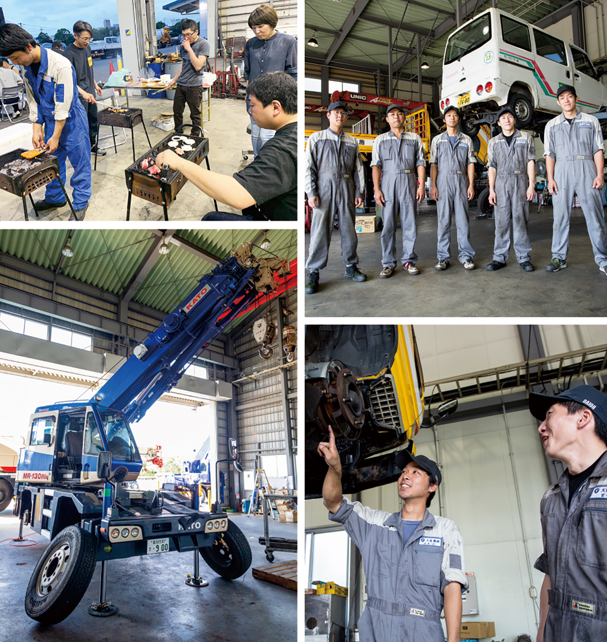 当社は、自動車の民間車検をはじめ、複数の国内大手建設重機、特殊車両メーカー指定の整備工場になっております。そのため、多岐にわたる車の知識や整備技術を取得できる「車好き」にはたまらない職場です。