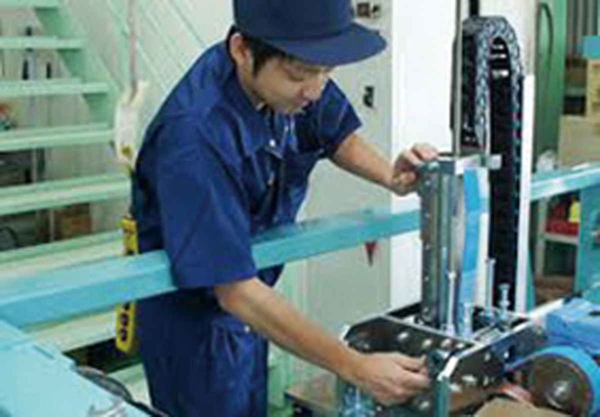 私たちが手掛けるのは、自動装置の製造。省人化・効率化のニーズが高まる中、需要は年々増加しています。当社が製造する部品や装置は、スーパーや商業施設など、製品を自動梱包する機械に使われています。