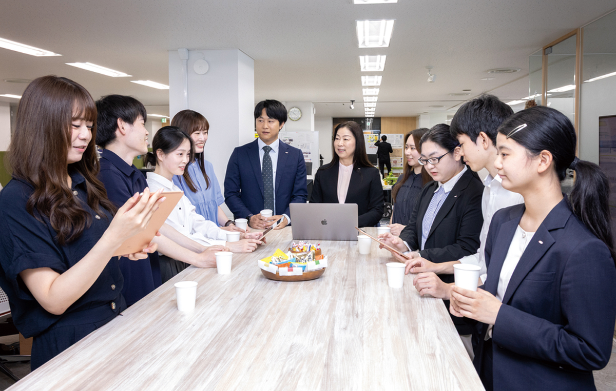遠藤社長は情報発信や企画立案、プロジェクトに積極的に若手社員を登用。先輩の活躍する姿は、後輩社員の憧れとなる。
