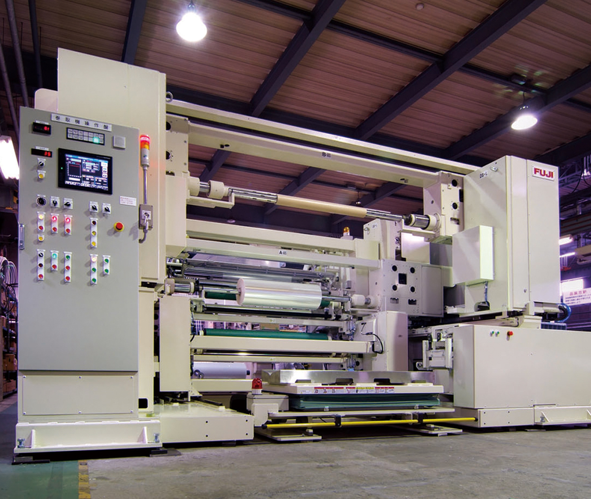当社は、巻取機・スリッター・ロール自動包装機と呼ばれる大型産業機械をオーダーメイドで製作する機械メーカーです。大手化学メーカーのフィルム生産ラインで使用され、生産されたフィルムは「食品、工業用、紙オムツ、建材、農業」や「リチウムイオンバッテリー用セパレータフィルム、液晶テレビ、スマートフォン用光学フィルム」など幅広い用途に使われます。当社独自の技術により社会に貢献しています。