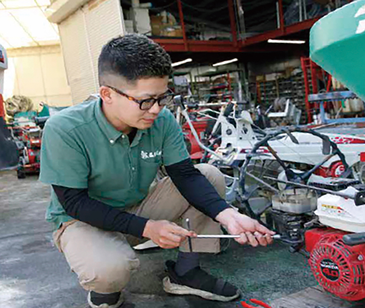 メッセージ - いろんなことにチャレンジさせてもらえる会社です。入社4年目になりますが修理、種苗部門担当、営業などいろいろな仕事を経験させてもらえて責任も与えてくれます。いろんなことにチャレンジしたい方にはおすすめです! (先輩社員 玉置太郎さん 2021年入社)