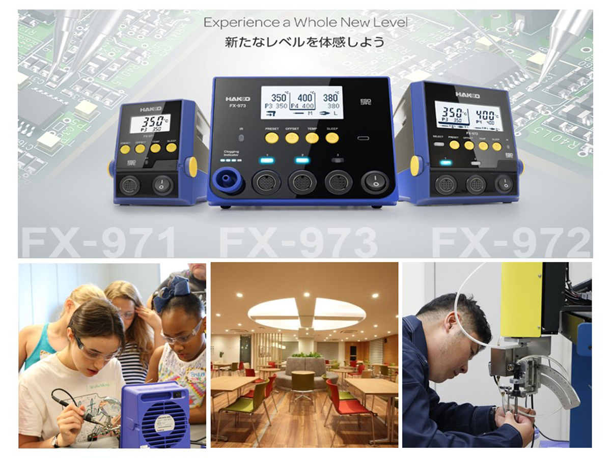 創業以来、はんだ付け機器を主力に開発・製造・販売を手掛け、世界60ヵ国のお客さまにご愛顧いただいています。当社製品はOA機器や自動車、医療機器、さらには宇宙関連機器にまで使用され、幅広い分野でモノづくりの品質と安全性を支える重要な役割を担っています。