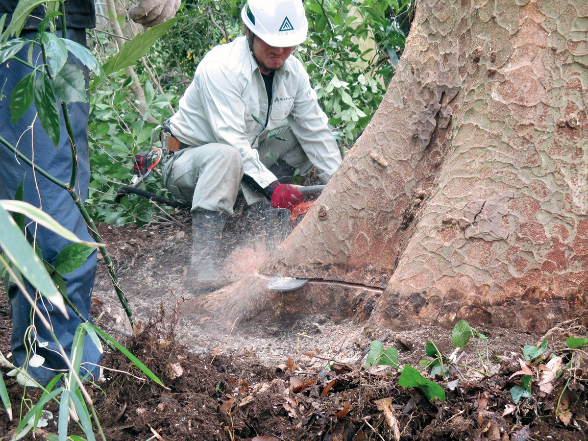 伐採や開発工事で排出される木くずなどの植物系廃材は、現場の徹底的な選別で搬出量を削減。自社プラントで木質チップに加工し、資源へと再生しています。