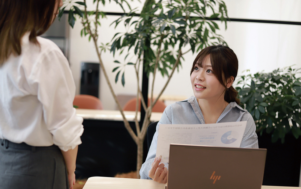 メッセージ - 時代の変化や世間のトレンドの影響で変化が多いので、先を読みつつ業務する環境自体が特殊で面白みを感じています。そのため、変化に柔軟に対応できるよう常にフラットな気持ちでいることを心掛けています。(先輩社員)