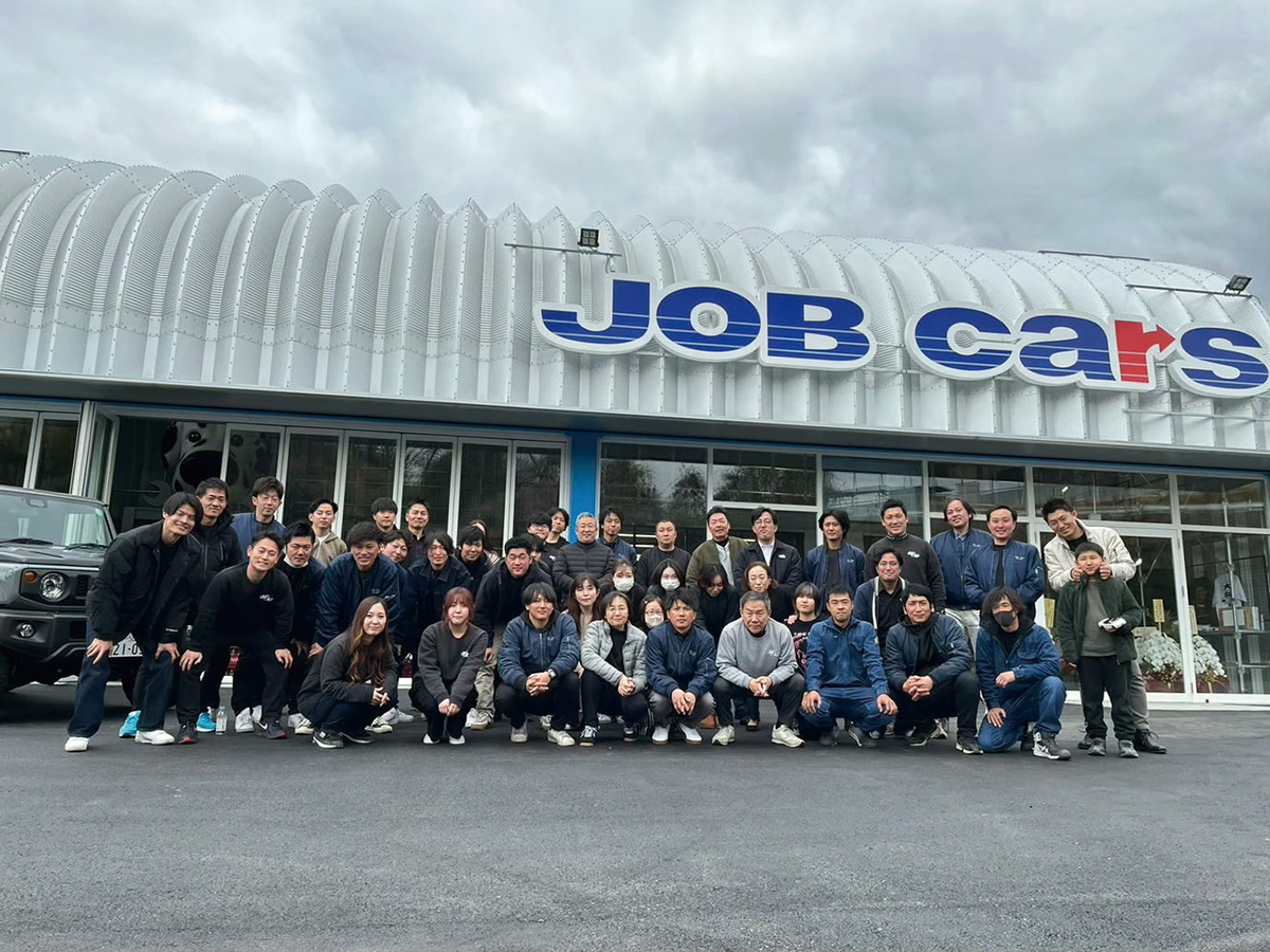 メッセージ - 私たち『JOBCARS』は何よりも仕事(働くこと)を通じて全国のお客さまへクオリティーの高い商品とサービスを提供すべく、社員一人ひとりを高社会人に育てることで商品と人を通じお客さまはもちろん関わる全ての人の「よかった」をモットーに歩んでまいります。(社長 吉村浩二さん)