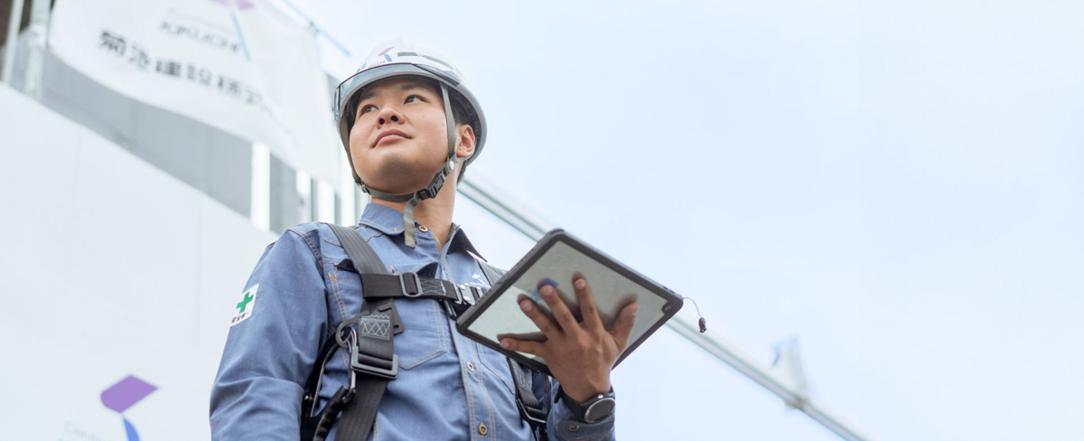 社員の働きやすさを追求している菊池建設。スマートフォンや社内SNSなどのITを駆使することで、コミュニケーションの強化だけでなくノウハウ、成功事例、ミスなどをいち早く共有。そのことが仕事の効率も向上させ、毎週水曜日の【ノー残業デー】や【有給取得奨励日】の導入など仕事とプライベートがしっかり両立できる環境を実現できています。