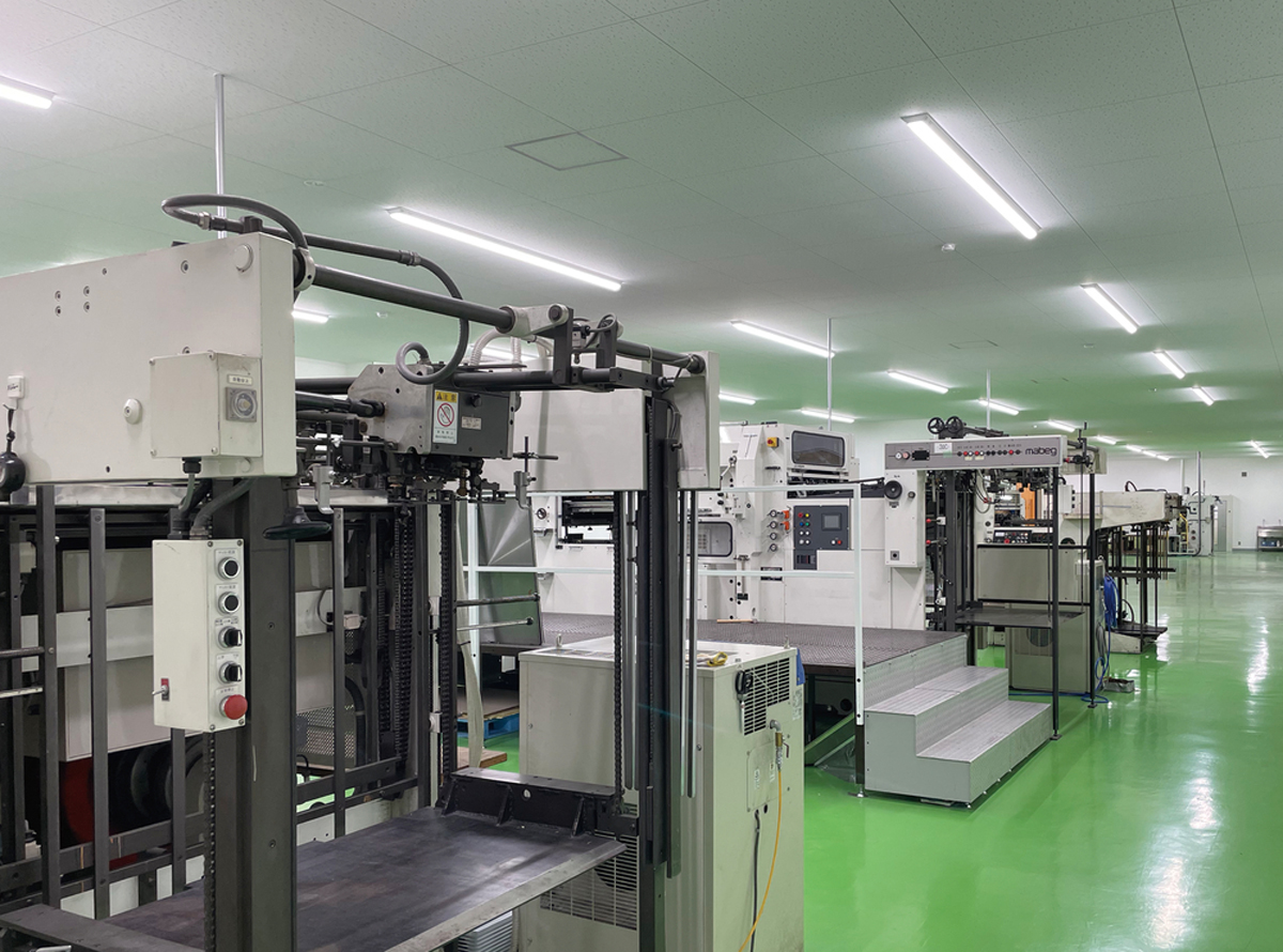 現在は四国を中心に、関東のお客様にも製品をお届けし、食品メーカーや衛生品メーカー向けに数千種類の紙製品を製造しています。2020年には新工場が完成し、「清潔さを、巻き取る・包む・載せる」というテーマの下、衛生的で高品質な製品づくりをさらに進めています。