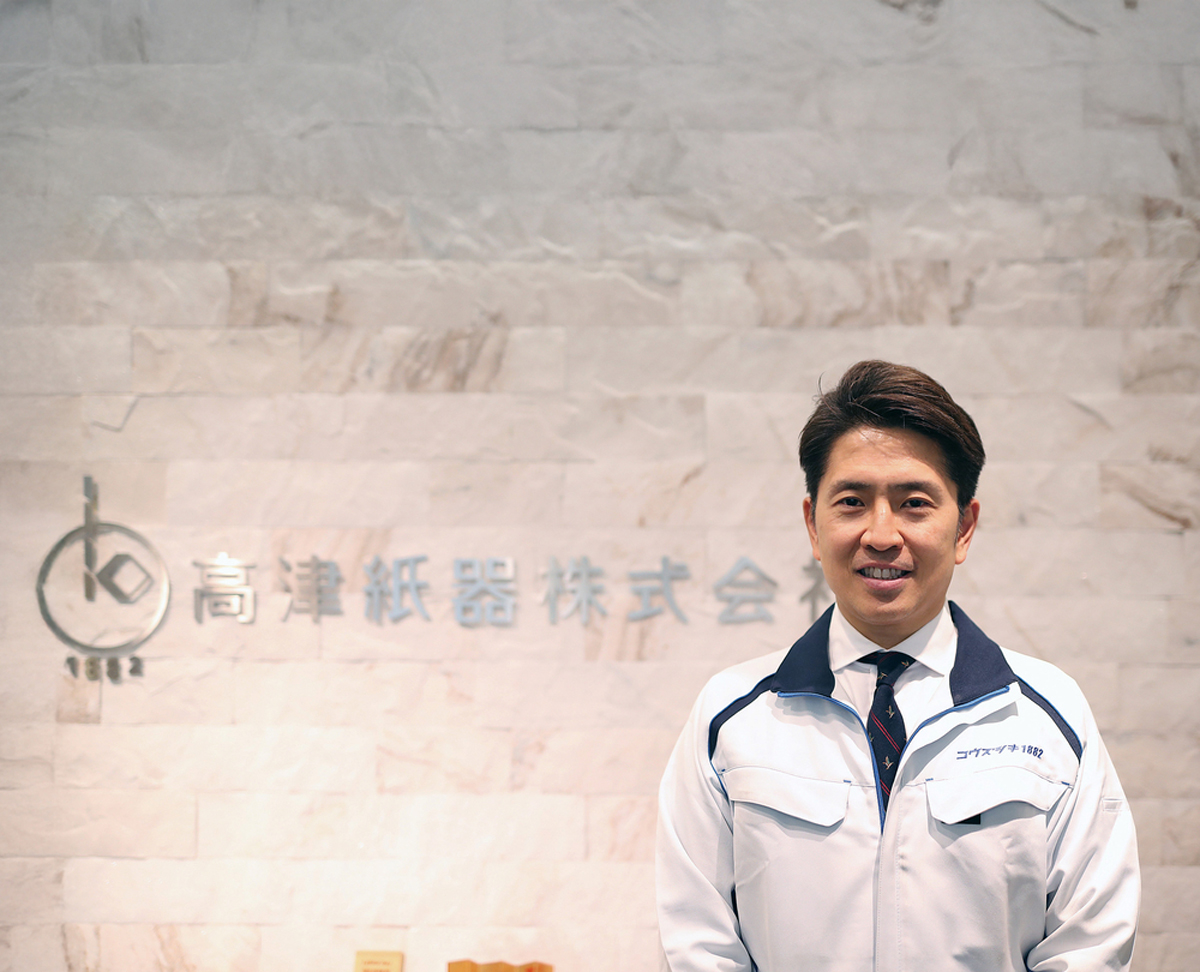 1978年4月6日、愛媛県生まれ。学習院大学を卒業後、日立製作所を経て、2004年に家業である高津紙器へ。2018年に代表取締役社長に就任した。目指すのは、「四国に深く根ざしながら、世界へも挑戦できる企業づくり」。そのためには社員全員が「ここで働けてよかった」と胸を張れる環境を守り育てることが自分の使命だと語る。趣味はトライアスロン。自身を限界まで追い込む過酷なトレーニングは、日々の判断力や覚悟にも良い影響を与えてくれるという。