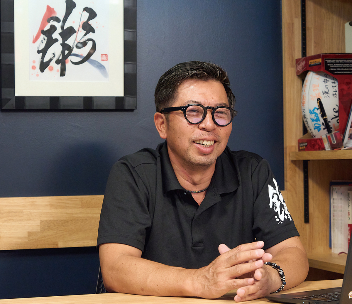 1972(昭和47)年、滋賀県出身。大学を卒業後大手通信会社での営業職を経て、大阪アメリカ村でアパレル店員やバーの店長など、さまざまな職を経験する。2003(平成15)年、株式会社ミヤジマに入社。2021(令和3)年に代表取締役社長に就任し、遊び心と情熱を大切にする職場づくりを実践する。座右の銘は「レッツゴーよりフォローミー」