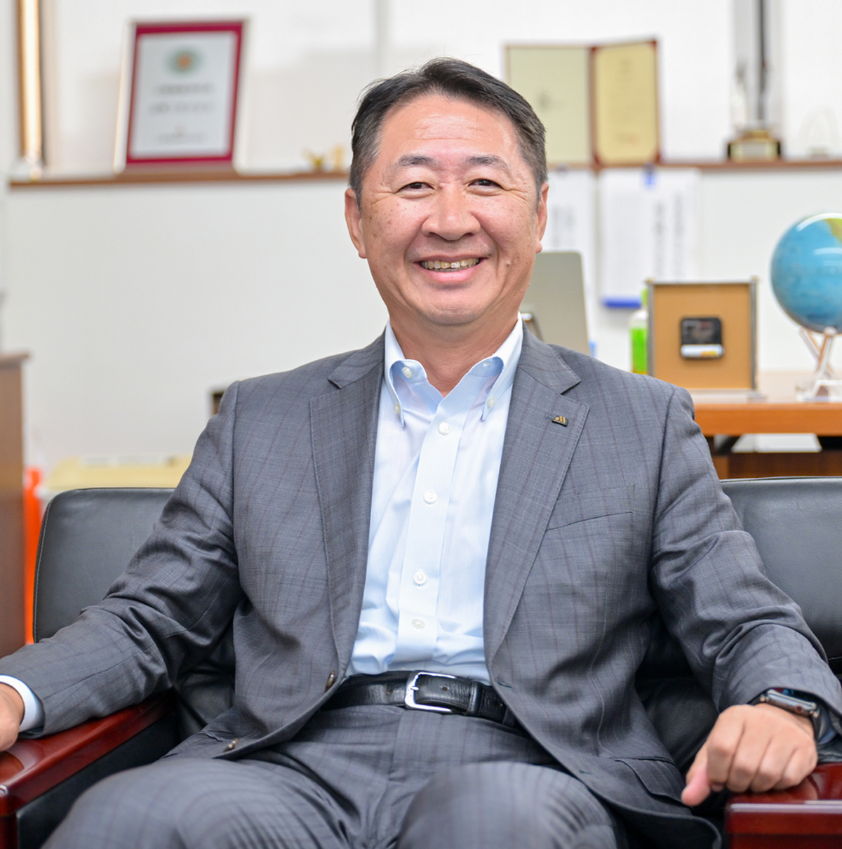 1970年5月生まれ。大阪の卸売企業で直需と卸の営業に3年間従事した後、アメリカのビジネススクールで経営を学ぶ。29歳で同社に入社。事業部長を経て2011年、代表取締役社長に就任。創業60周年の節目にホノルルマラソンにエントリーし、初マラソン完走に挑戦。