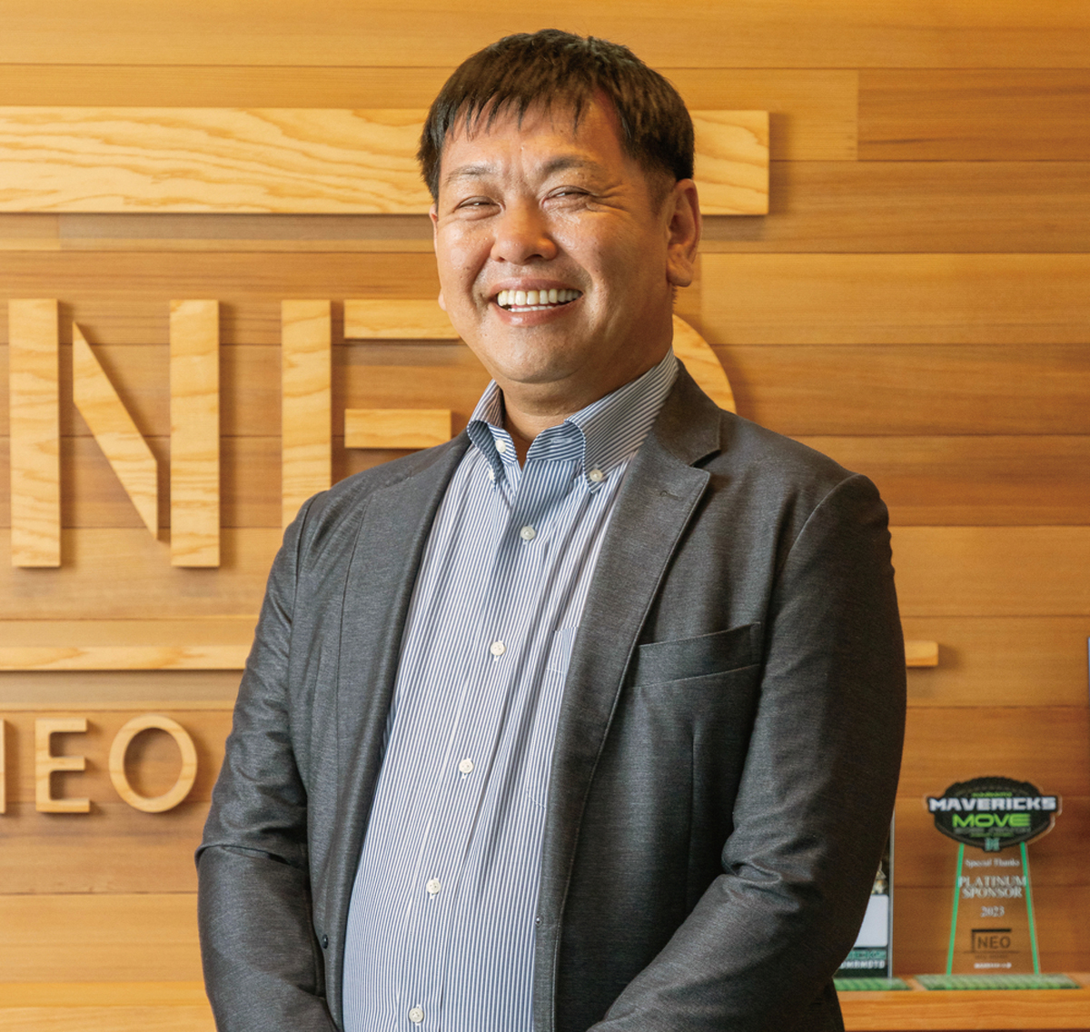 1975年9月生まれ、熊本市南区上ノ郷出身。熊本YMCA学院建築科を卒業後、住宅・建築会社などで約20年間営業職を経験したのち、2016年8月に株式会社ネオホームを設立。以来、2018年8月に資本金を1,000万円から2,000万円に増資、2021年8月には現在地に本社屋を新築、移転と、同社を着実に成長へと導いている。
