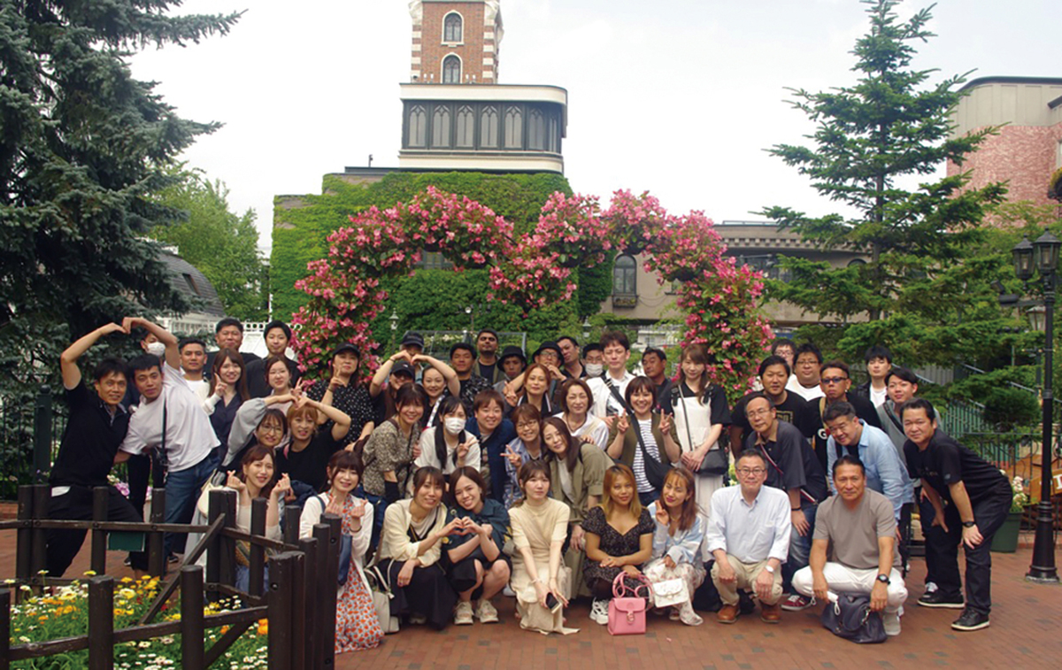 社員旅行での記念撮影( 北海道2泊3日の旅・白い恋人パークにて)