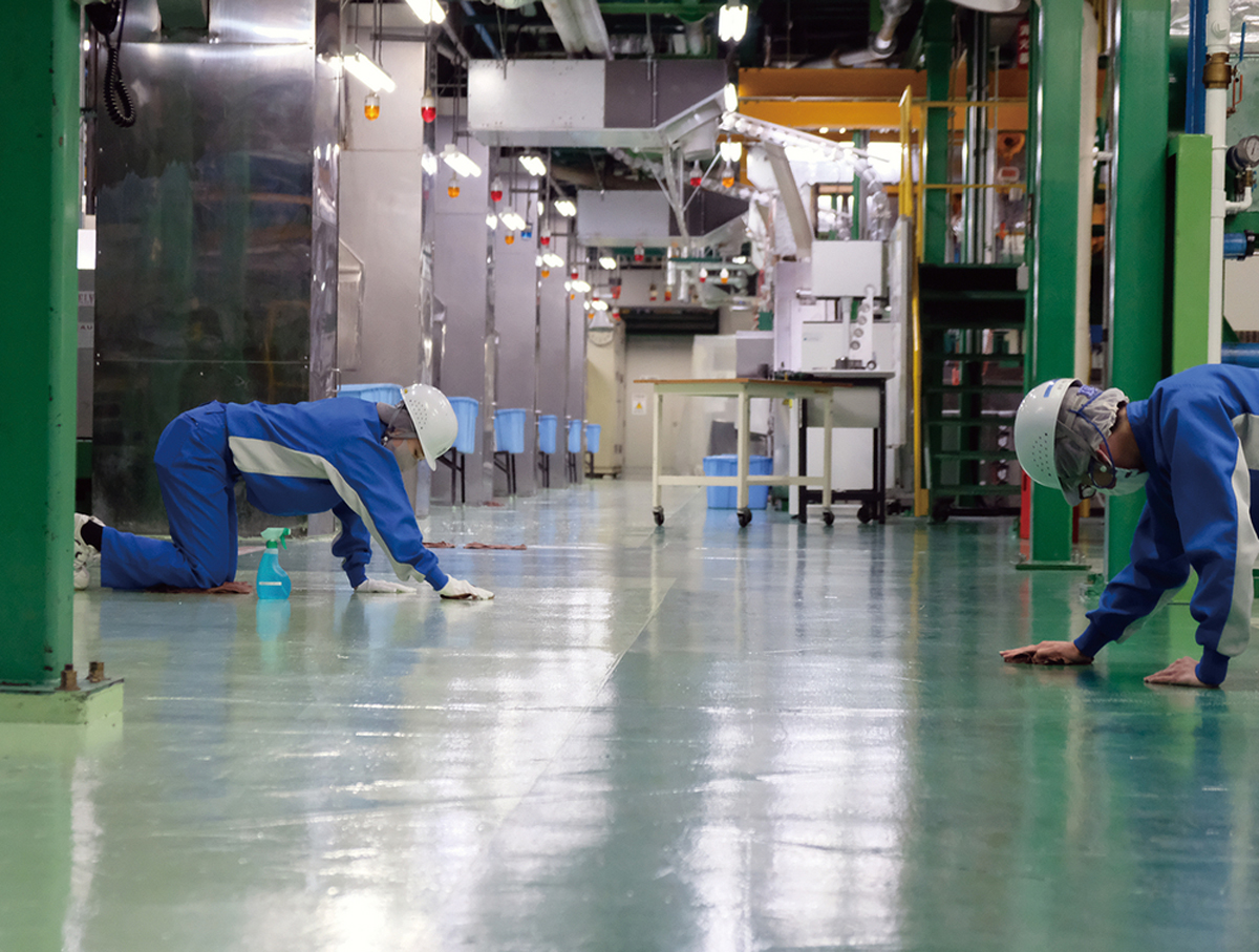 当社のモノづくりの基本は「6S」。6Sとは、作法・躾・整理・整頓・清掃・清潔の6つの言葉のことで、食品容器工場のあるべき姿を目指すための企業風土です。