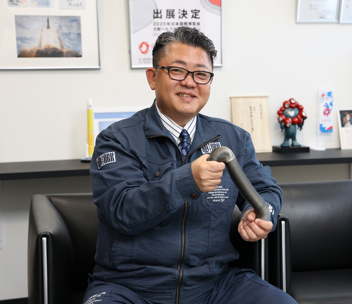 当社の2025(令和7)年の最大のニュースといえば、大阪・関西万博への出展です。私たちが掲げたテーマは「医療」と「宇宙」。医療分野はこれまでよりもさらに内径の小さなフレキシブルチューブ、宇宙分野はたためるホースを新開発し公開しました。フレキシブルチューブは、内径1.6ミリでもギネス世界記録に挑戦できる細さですが、さらに細く内径1ミリを実現。「NANO Flex(ナノフレックス)」と名づけました。以前から、注射針のように金属製の極細パイプは存在しますが、私たちの新製品はしなやかで気密性もある金属のチューブ。血管の中を通るカテーテルのような用途が考えられます。一方のたためるホースは、ストローの蛇腹のような構造で、2倍の長さに伸ばすことが可能です。こちらの名前は「ORIGAMI(オリガミ)」。宇宙ロケットに積載されるものはすべて「より小さく」「より軽く」が求められており、当社の技術が役立つのではないかと思います。万博という歴史に残る大舞台でのお披露目をめざして、数年前から開発を進めた2つの新製品。展示は大盛況のうちに終了し、期間中には従業員も会場に足を運び、大きな刺激を受けました。今後は、医療分野や航空宇宙分野に加え、食品分野や農業・畜産分野にも可能性が広がっていると感じており、さまざまな展示会に積極的に出展していきたいと考えています。