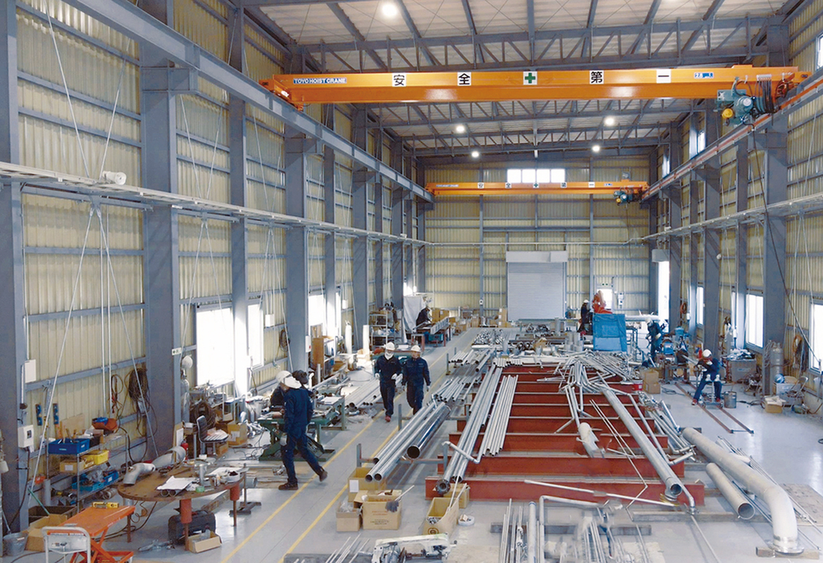 プラント関連の配管工事を中心に手掛けています。自社工場にてクライアントの細かな要望に対応できることが強みであり、大手企業の他、九州防衛局の陸上自衛隊、航空自衛隊、大分県など受注先は幅広く、全国に活躍の場を広げています。これからも価値ある事業とサービスを社会に提供することで、安心して暮らせる持続可能な社会、環境づくりに貢献すると共に、今後も社員一丸となって「人間力(きめ細やかな施工管理能力)」に磨きをかけ、企業価値の向上に努めていきます。受注増加に対応するため、2026年2月には福岡県大牟田市の新大牟田駅産業団地にて、新工場が稼働予定です。