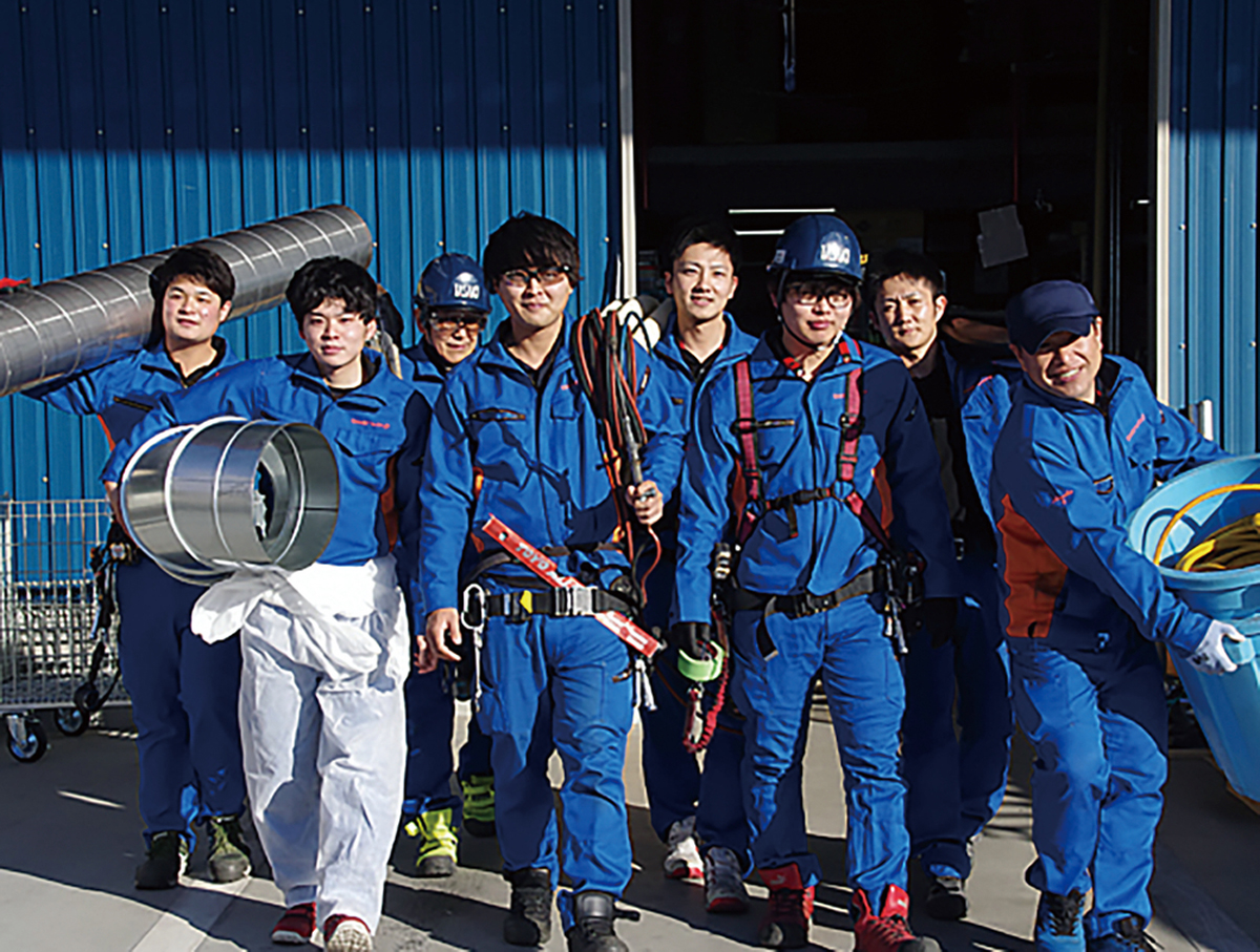 当社は、冷凍空調や局所排気装置、換気設備の技術を通してものづくり企業の作業環境の改善に貢献する企業です。特に「危険物倉庫の空調」や「局所排気装置」は取り扱う業者さんが少なく、ニッチな技術として全国から問い合わせをいただいています。製造業のお客様が求める生産環境を改善提案し、かたちにする。その環境をいつまでも安心してお使いいただく。そのために、提案設計から施工・現場管理・メンテナンスに至るまで一貫して対応し、高い評価をいただいています。一人では難しくてもチームワークを活かしみんなで考えればいいものが出来上がります。いっしょに挑戦し、新たなオンリーワンを磨いていきませんか。
