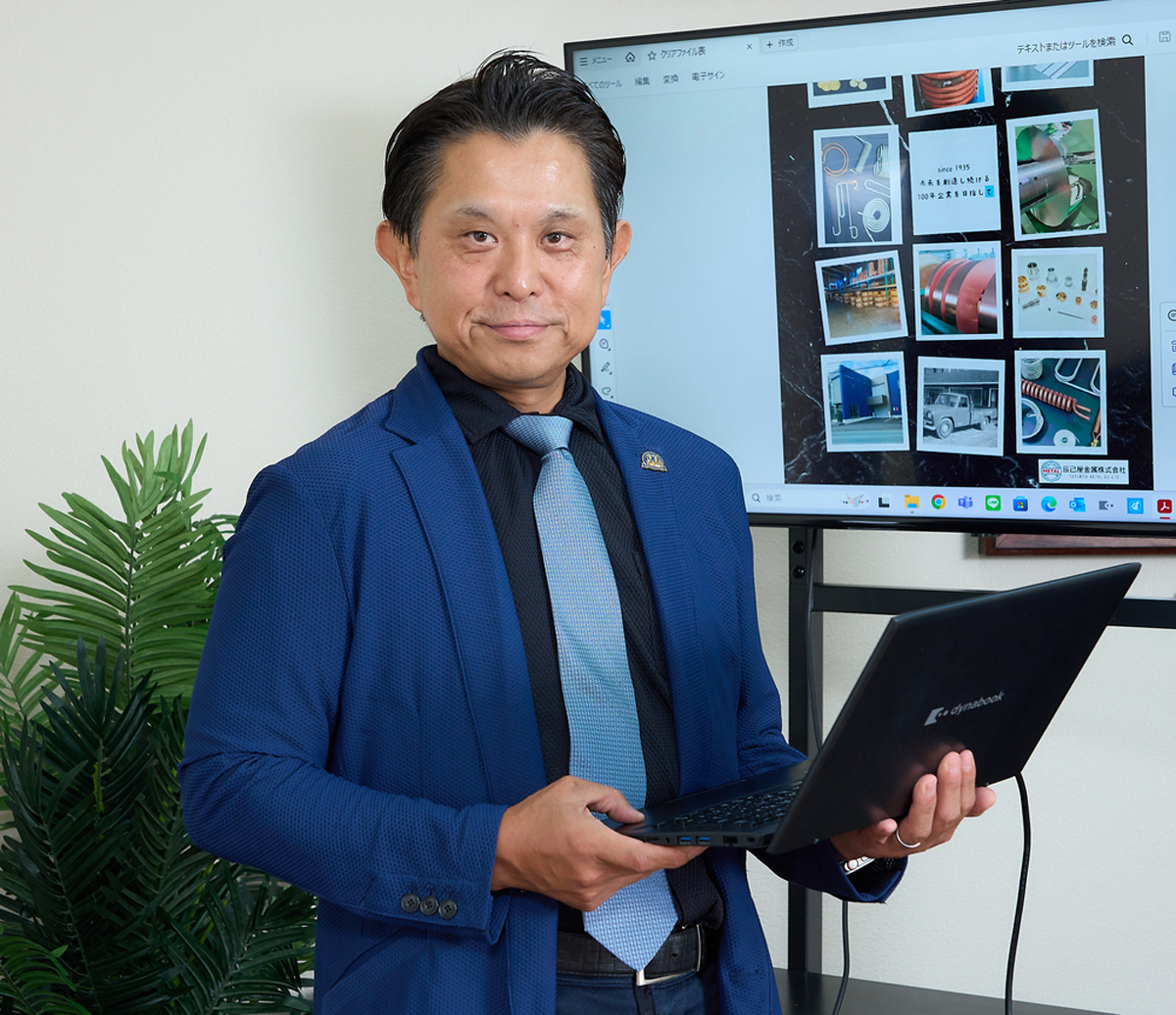 1975(昭和50)年、京都府生まれ。東海大学を卒業後、アメリカとドイツに留学。帰国後、東京のIT関連会社勤務を経て、2005(平成17)年に辰己屋金属入社。営業として大手企業の新規開拓や東京営業所の立ち上げに尽力。2017(平成29)年に代表取締役社長に就任。