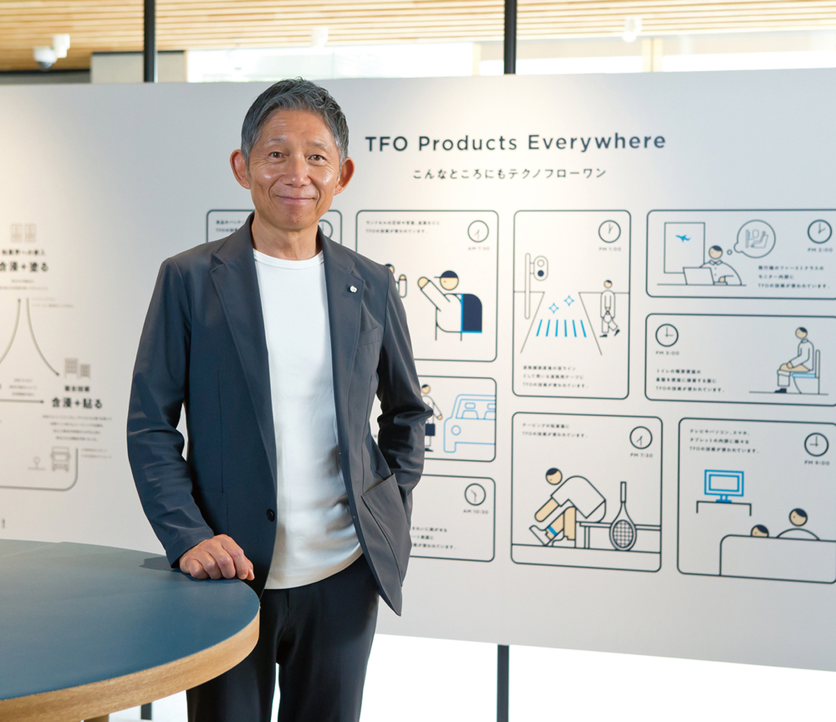 1962(昭和37)年生まれ。兵庫県出身。大学卒業後、アメリカの大学院へ留学し、MBAを取得。1989(平成元)年に入社。2004(平成16)年に代表取締役に就任。別会社として株式会社トゥーエイトレフトを立ち上げ、フライトシミュレーターセンター「テクノバード」もオープンし、テクノフローワンの社内研修にもフライトシミュレーターを活用。