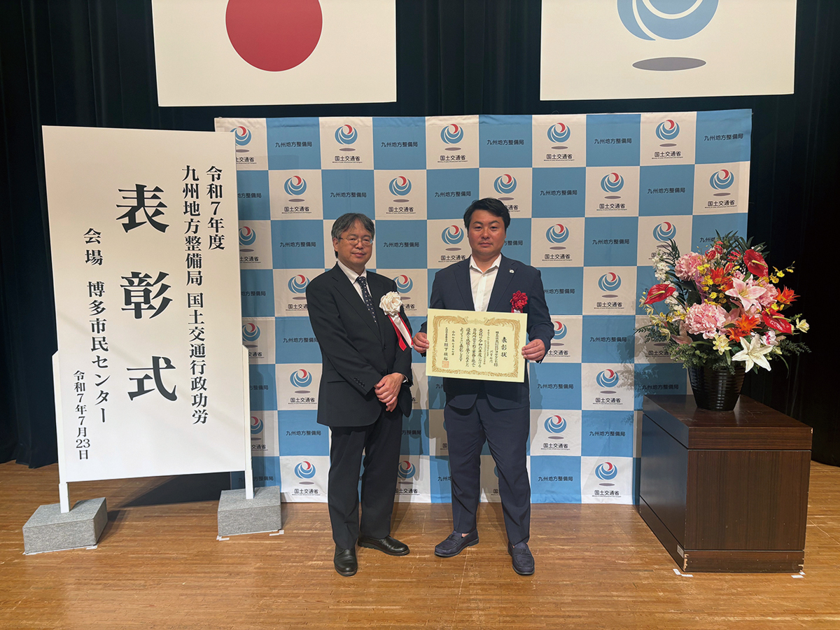 2025年7月に国土交通省九州地方整備局長より、測量業務で優秀な成績を挙げたことにより、局長表彰を受けました。また同月、優良業務担当技術者特別賞も長崎河川国道事務所長より表彰されました。