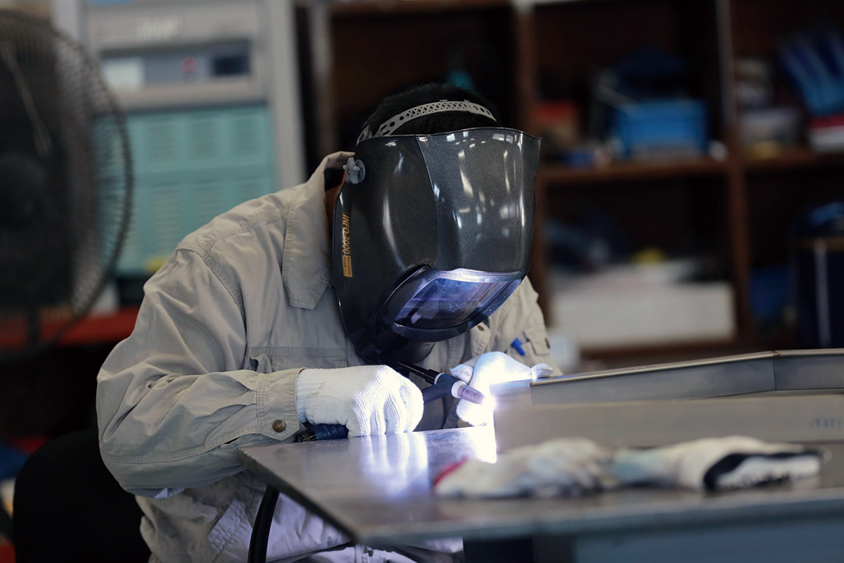 積極的に設備投資を行っており、複数台の製造設備を所有してお客様のご希望に沿った製造に注力しています。今年度もレーザー溶接機を導入していますが、未経験の方でも短期間の練習で使用できるようにサポートしています。