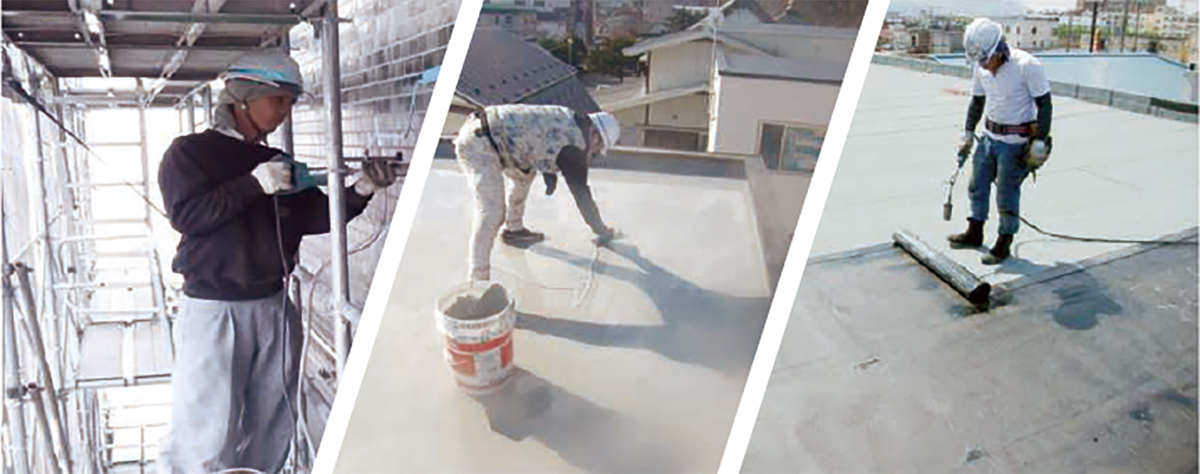 - 防水工事、ゴムチップ弾性舗装、外壁改修工事、各種塗床工事他