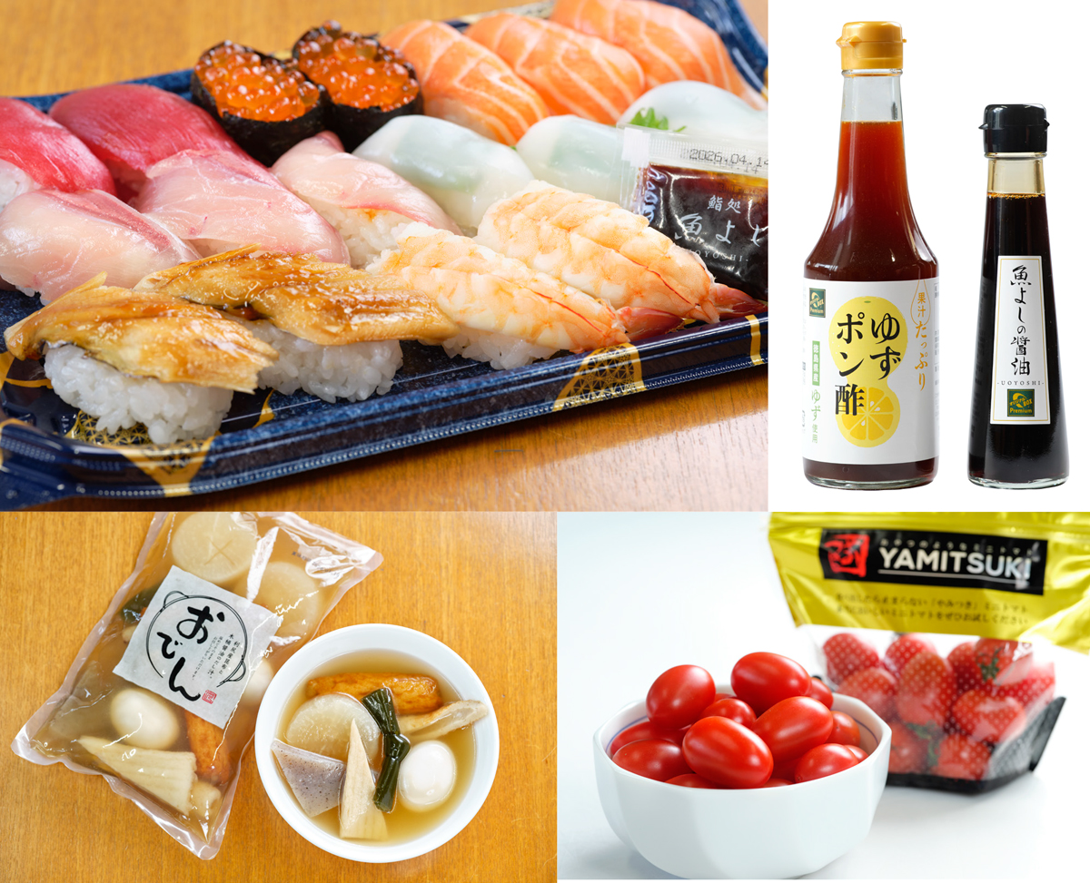 このクオリティを支えているのが、社内の「味のプロ」たちによって構成する専門チーム「味Gメン」です。味・食感・香り・鮮度・見た目などを日々徹底的にチェックし、基準に達しないものは即座に棚から外し、改善するようにしています。バイヤーの圧倒的な目利き力も当社が誇る強みです。野菜・果物・精肉・鮮魚・デイリー・グロサリーなど各部門に専門バイヤーが在籍し、その知識と舌がマルヨシセンターの味を支えています。地産地消を基本としつつ、本当においしいものを求めて全国へ足を運び、味と安全性に納得できたものだけをセレクトしています。例えば、PBの寿司専用醤油は、地元の老舗メーカーと共同開発したもの。地元の文化と食に寄り添いながら、他にはない唯一無二の味わいを実現しています。私たちが明確に意識しているライバルは、同業のスーパーマーケットではなく「外食店の味」です。寿司、惣菜、ベーカリーなどの全てで、外食クオリティを凌ぐ仕上がりを追求し、「本格店と比較される存在に」という高い目標を掲げています。当然ながら、おいしさの基準は買った瞬間ではなく、家に帰って食べる時が最もおいしいかどうかが命です。寿司ならシャリやネタの温度管理、揚げ物なら衣の食感、煮物なら味の染み具合までといったように、あくまで「食べる瞬間」を基準としたレシピ開発・工程管理を行い、世代や性別による味覚差もテストで丁寧に拾い上げ反映しています。さらに、食の根幹を支える「水」にも徹底してこだわっています。全国各地の水を徹底的に調査した結果、徳島県にそびえる剣山から湧き出る名水がおいしい「お米」おいしい「お惣菜」を調理するために最も適した水と判断。当社の惣菜工場や、インストアの調理場でもこの水を使用しています。タンクローリーで毎日運ぶ手間とコストを惜しまず、味の土台となる水から品質を作り込む。これも当社ならではのこだわりです。私たちは、こうした取り組みを通じ、地域の食卓を豊かにし続けています。